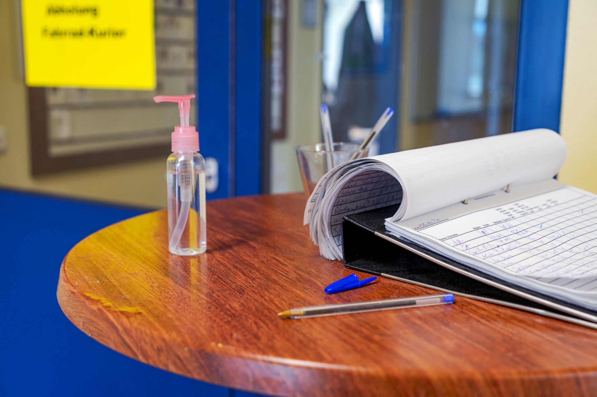 Selbst unsere KollegInnen achten auf ihre Sicherheit und brachten vorm Lehrerzimmer Desinfektionsmittel an und das Betreten und Verlassen wurde gründlich dokumentiert.