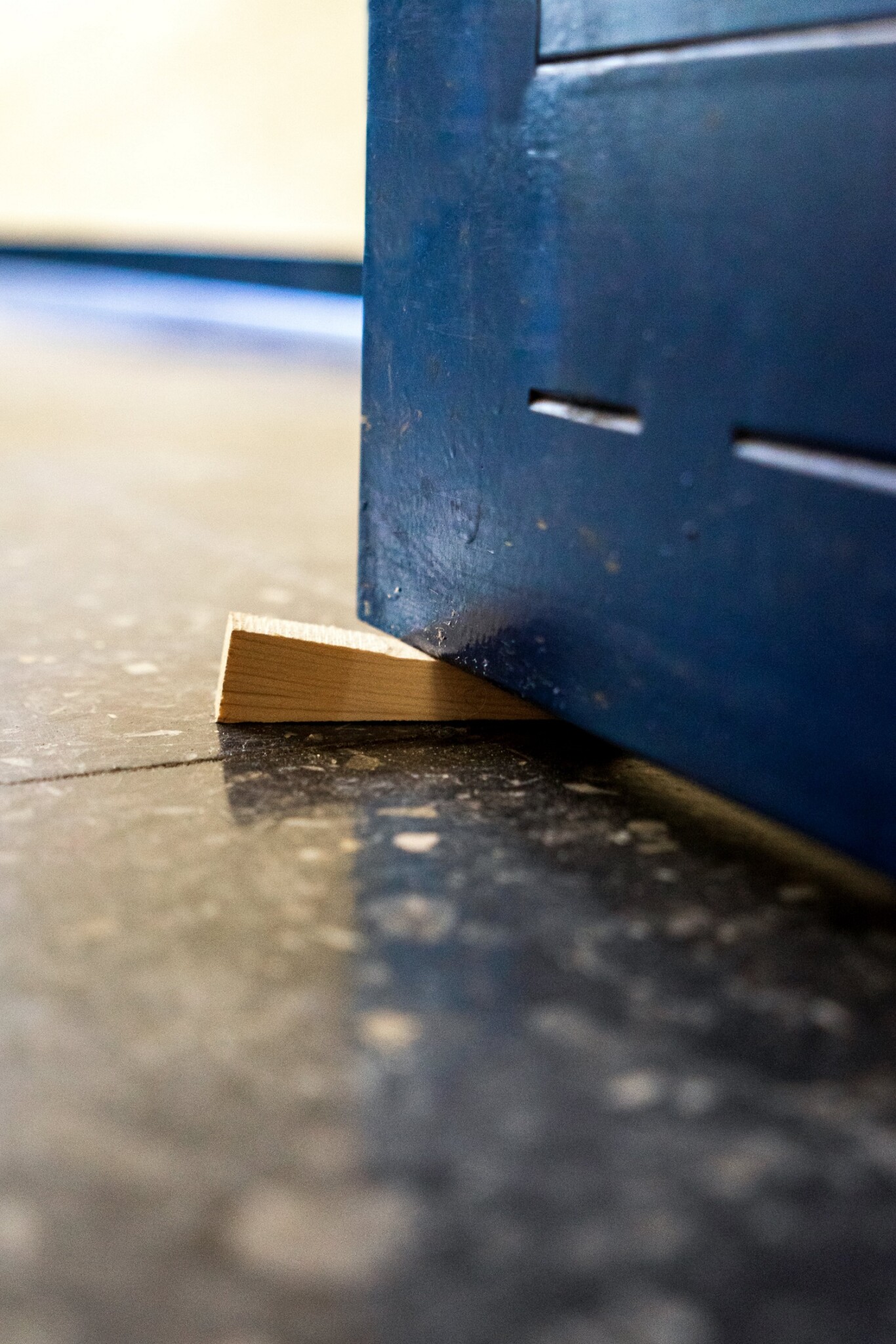 (Holz) Unsere Werkstattmeisterin Frau Jankowski konstruierte diese Holzhalterungen an den Türen, damit die Eingänge für die Schülerinnen und Schüler offen standen und der überflüssige Kontakt gemieden wurde.