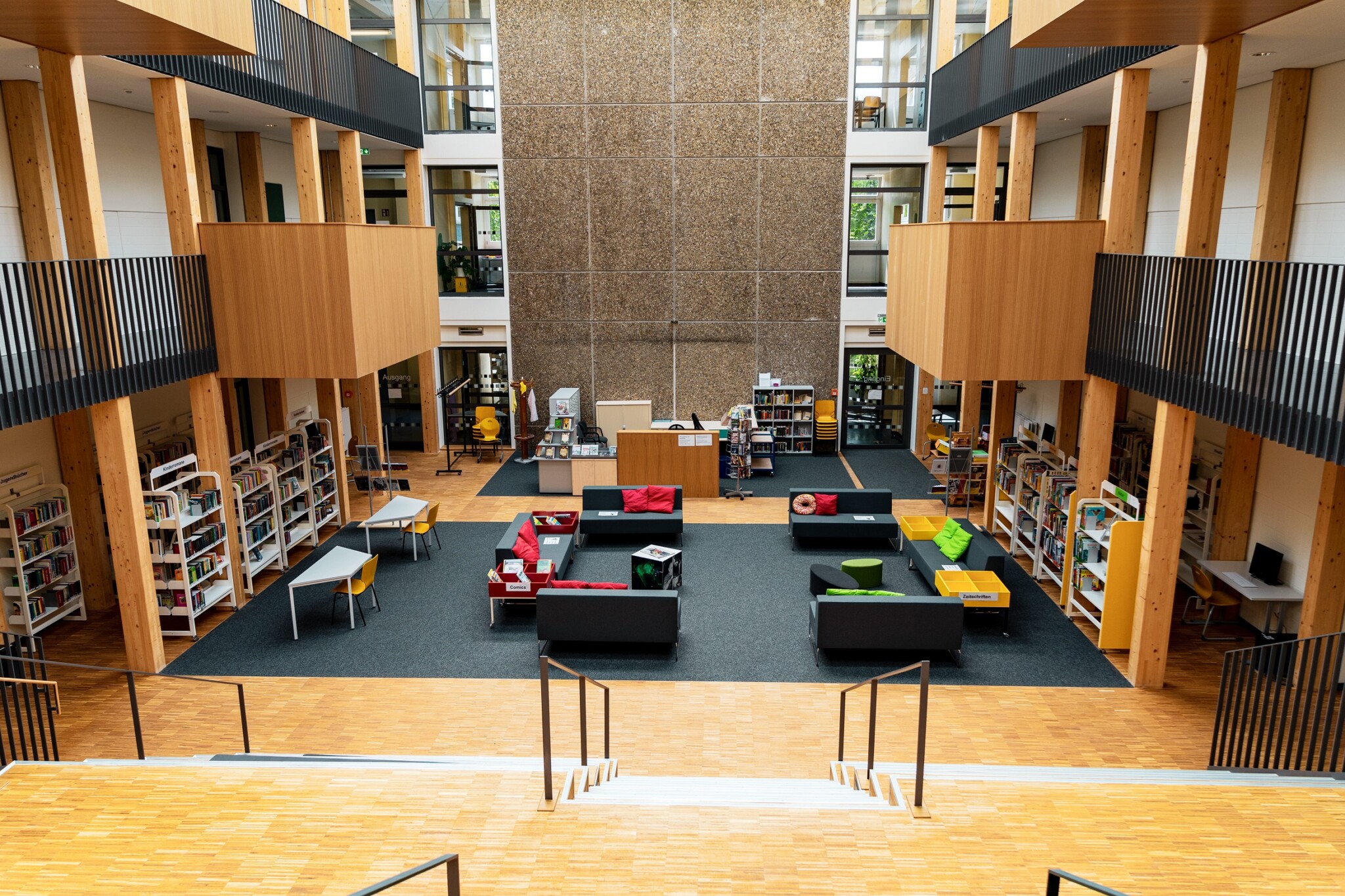 Die Mediathek ist aufgrund der Corona-Pandemie bedingt geschlossen. Zusätzlich hat unsere Werkstattmeisterin Frau Jankowski schon an zwei Balkonen die Tische so umgebaut, dass sie als Gruppentische nutzbar sind.