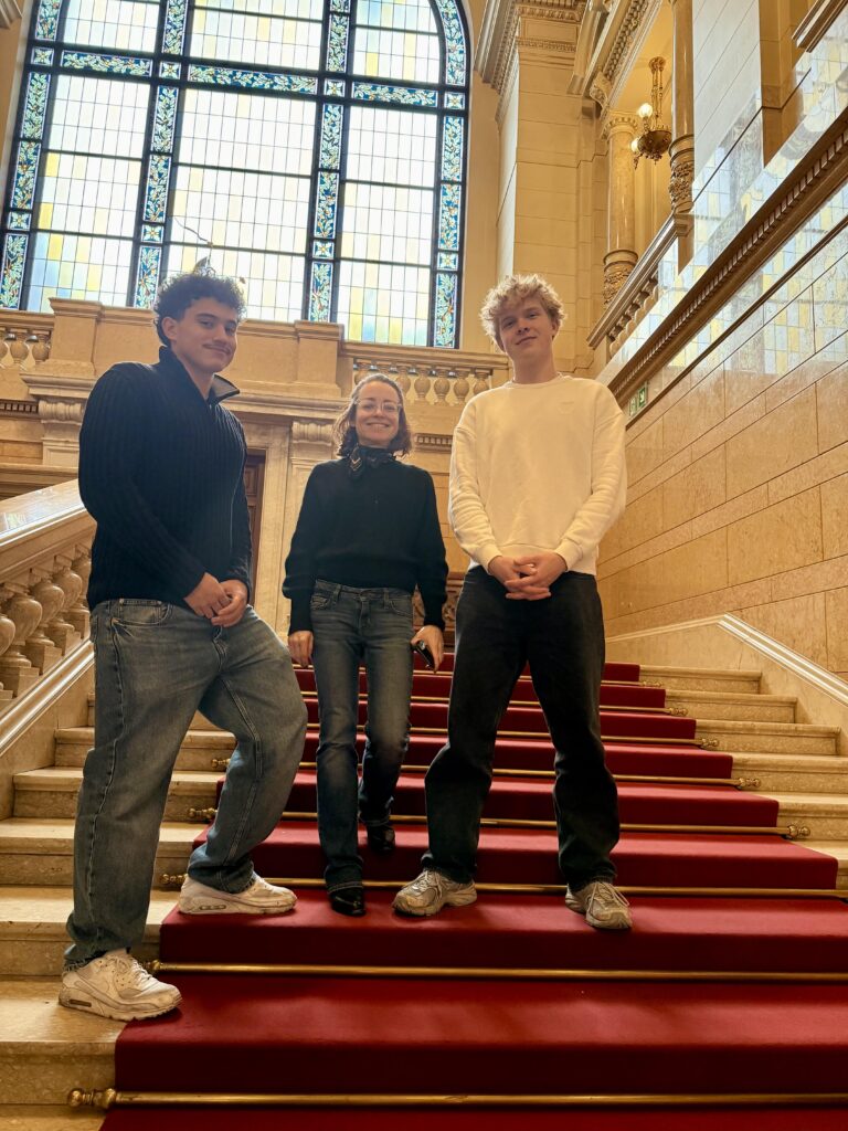 In Hamburg werden alle Schüler*innen, die einen ersten Preis in einem Wettbewerb auf Hamburg-Ebene gewonnen und/oder auf Bundesebene hervorragende Leistungen gezeigt haben, zum Wettbewerbsfest im Hamburger Rathaus eingeladen. Meo Kieme und Evan Sanchez haben die Ehrung für die Klasse wahrgenommen und bekamen in einer feierlichen Zeremonie von Katharina von Fintel, Staatsrätin der Behörde für Schule, Familie und Berufsbildung, Ehrenurkunden überreicht.