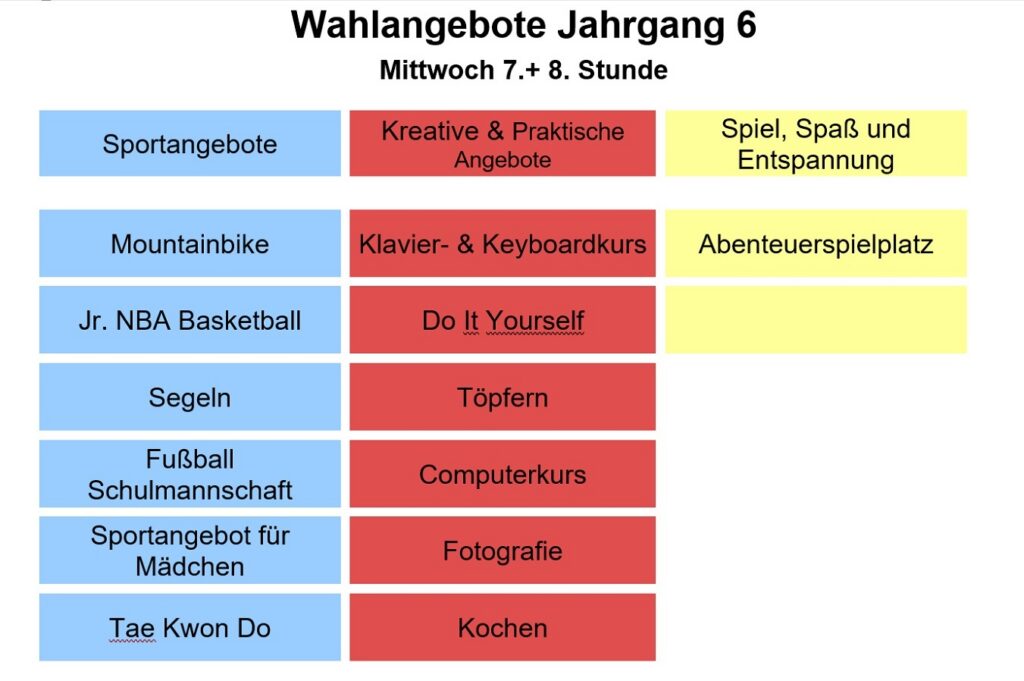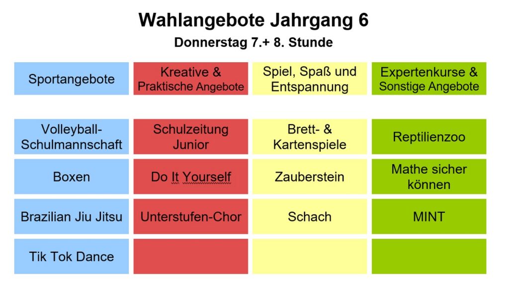 Wahlangebote Jahrgang 6